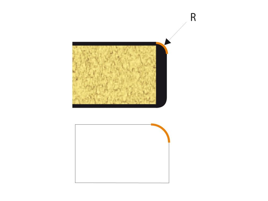 Fréza s rádiusom R2 alebo R3 precízne zaobľuje hranaté dosky 2 alebo 3 mm ABS hranou. Rádius R5; R6,3 a R8 mm je určený pre zaobľovanie hrán na MDF doskách alebo tvrdom dreve. Vďaka perfektnej geometrii a stále rovnakému reznému priemeru majú tieto žiletkové frézy kvalitnejší rez a dlhú životnosť. Žiletky majú rádius vybrúsený z dvoch strán.