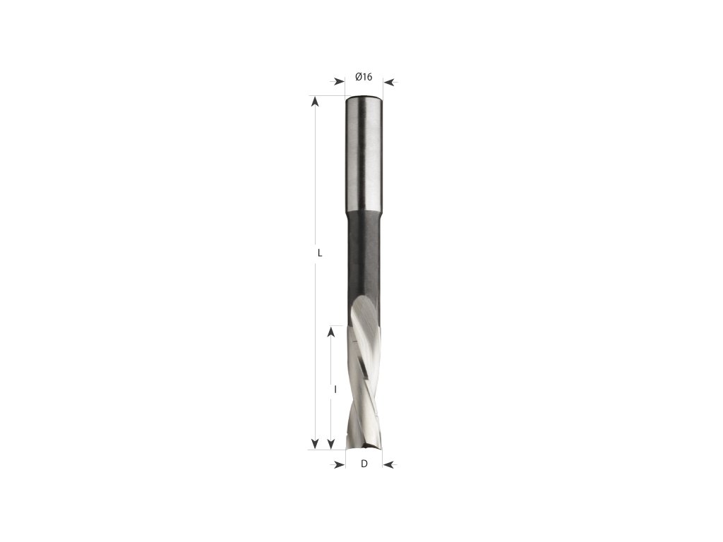 Najoptimálnejšie riešenie pre rýchlosť vŕtania, odvod triesok z miesta rezu a kvalita dlabu je kombinácia 2 rezných zubov vybrúsených do špirály s lamačmi triesky.