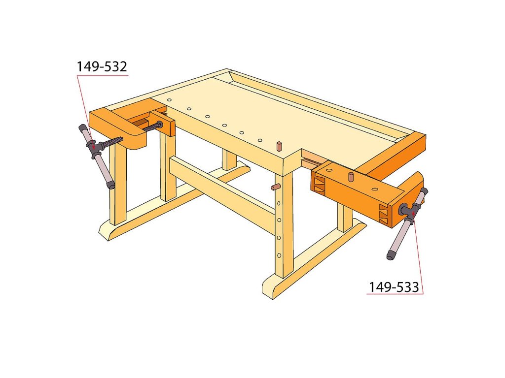 Vreteno pre predný zverák vyzerá podobne ako pre zadný zverák, má však navyše komponent pre pripevnenie pohyblivej čeľuste predného zveráku. Ten umožňuje presné a pevné upnutie dielca proti bočnej hrane hoblice. Trapézový závit a liatinové príruby vretena zabezpečujú hladký chod a pevné upnutie so zárukou dlhej životnosti.