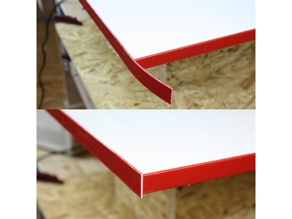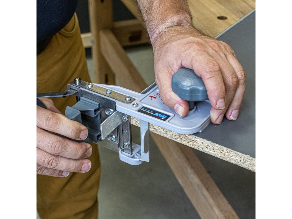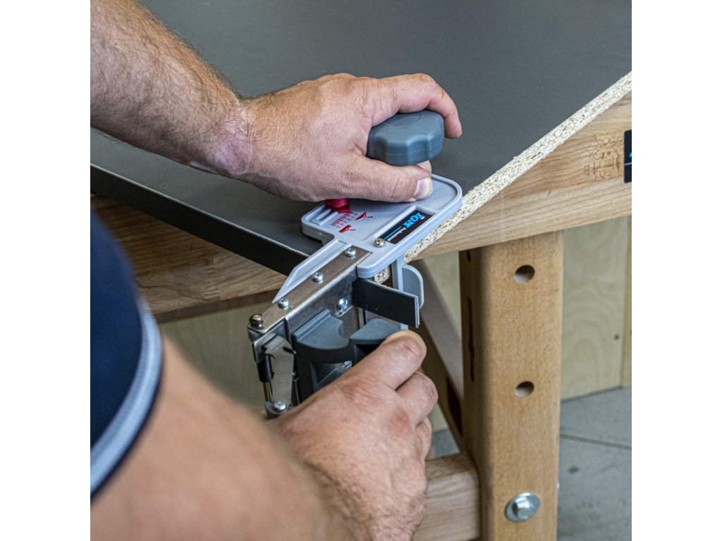 Určené pre presné a čisté zarezanie hrán ABS, melamínu, polyesteru alebo dyhy. Podľa tvrdosti hrany je možné skracovať hrany šírky až 55 mm. Hrany hrúbky 2mm do šírky 45mm a hrúbky 3 mm až do šírky 25mm. Gilotínové systém umožňuje skrátiť hranu bez väčšej námahy. Hrana sa provlíkne gilotínou a odstrihne. Rezacie nože je možné brúsiť. Pozíciu rezania možno presne doregulovať, čo umožňuje presné uhlové rezanie až 60°.