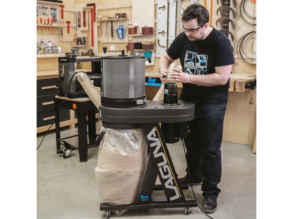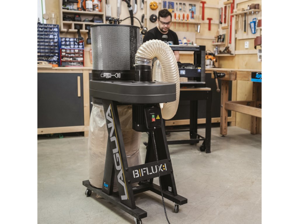 Výnimočný, kompaktný a prenosný odsávač pilín a prachu pre pílu alebo brúsku. Ideálny pre menšie dielne. Má elegantný dizajn a zodpovedajúcu silu. Už žiadne neobratné zapínanie oceľového pásu pre upevnenie odpadového koša, odsávač BFlux je vybavený pásikom Snap-Band pre rýchle upnutie odpadového vreca. Oproti ostatným porovnateľným jednotkám má BFlux stabilnejšiu konštrukciu a menšiu hlučnosť. Stroj je vybavený 100mm hrdlom, ktoré môžete otočením základnej časti stroja nasmerovať nadol alebo nahor. Odsávacia hadica tak môže mať prívod odpadu zospodu alebo zhora.