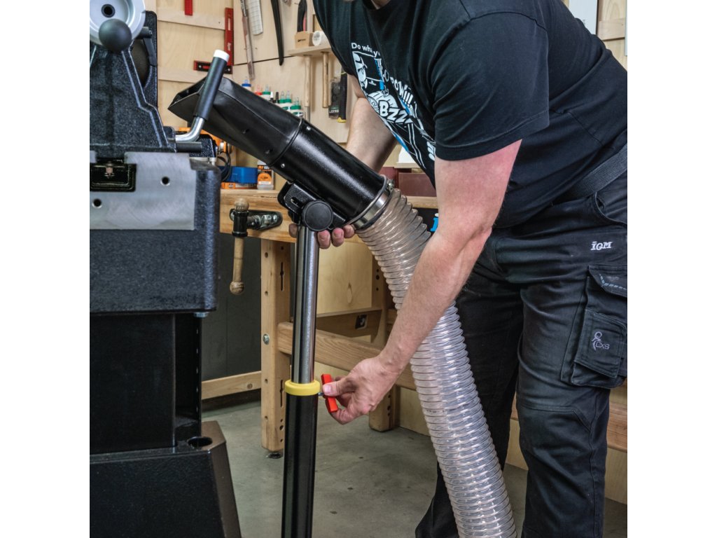 Praktická odsávacia hlava na nastaviteľnom stojane. Je vhodný najmä pre odsávanie odpadu od stroja či dielca v prípadoch, kedy nejde priamo pripojiť hadicu k stroju, napríklad pri sústružení. Jednoducho pripojte 100mm odsávaciu hadicu k 100mm kovovému pripojeniu na plastovom nadstavci. Oceľový stojan poskytuje užitočné výškové rozmedzie od 750-1200mm a celkovo meria 90 cm, bude teda pevne stáť aj na nerovnej podlahe! Nadstavec má rozmery 320 x 35 mm a dovoľuje optimálne prúdenie vzduchu, odporúčame pripojiť k odsávaču aspoň 750m3/h.