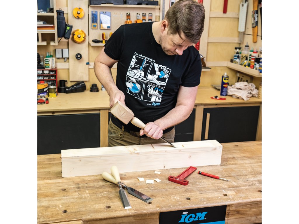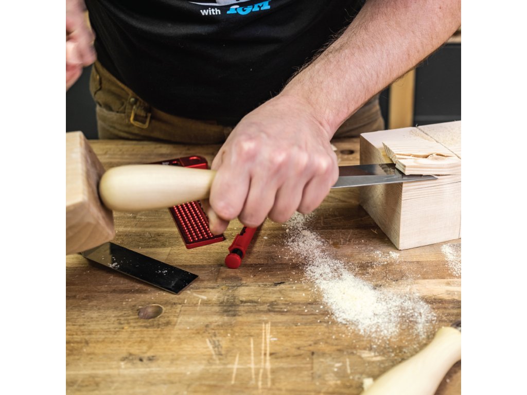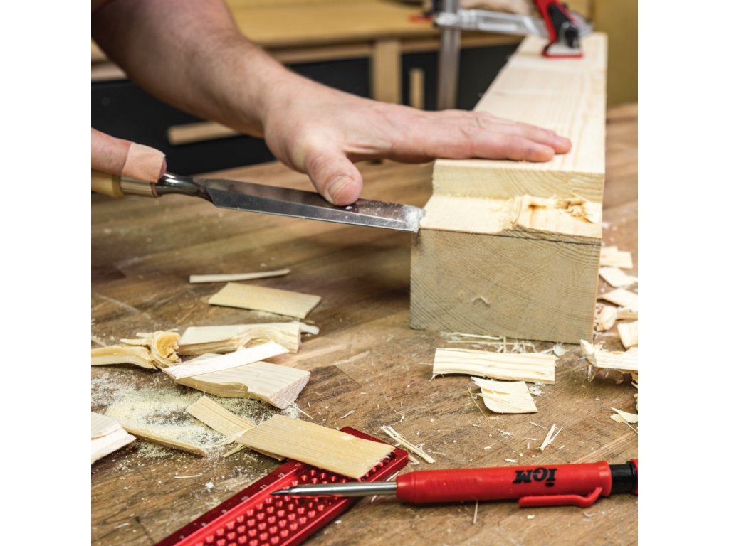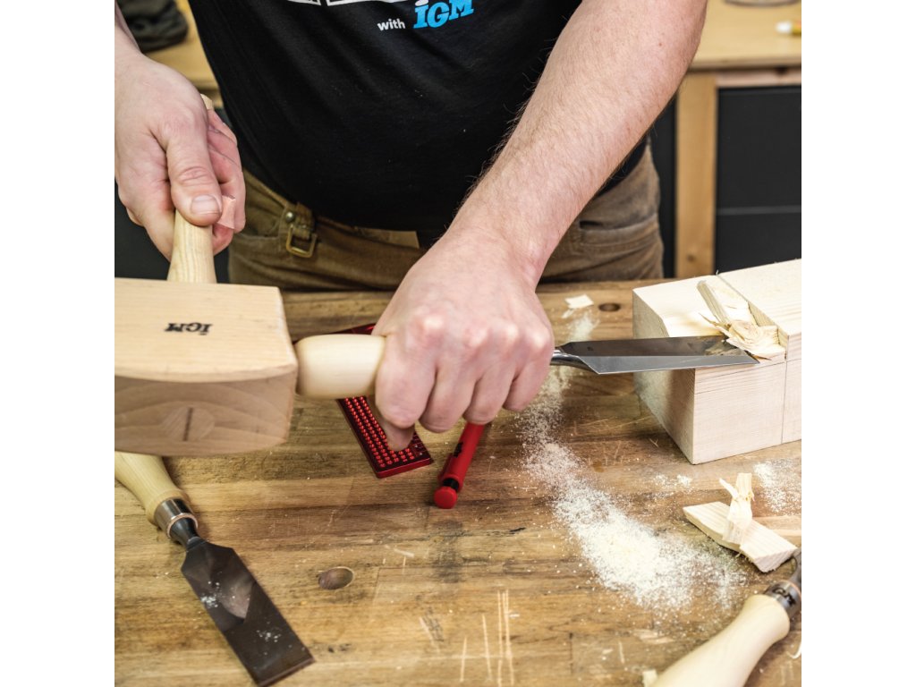 Vynikajúce ploché dláto značky IGM je vhodné pre stolárov, ktorí ocenia kvalitu a tradičné spracovanie. Je určené na dlabanie ostrých rohov, ozubov, rozporov a čapov. Jemne vybrúsená, leštená čepeľ je kovaná z kvalitnej veľmi legovanej ocele s tvrdosťou 60 HRC. Preto oproti bežným dlátam zostáva dlho ostrá. Hrana ostria zbrúsená pod 25° uhlom vyžaduje pred prvým použitím honovanie pre dosiahnutie mimoriadnej ostrosti. Tiež odporúčame vykonať 30° mikronábrus na hrane ostria pre predĺženie jeho výdrže. Úzke, zbrúsené boky čepele sú ideálne pre prácu v tesných priestoroch, zvlášť pri výrobe čapov a rybín. Rukoväť dláta je vyrobená z kvalitného a húževnatého hrabu, ktorý odolá aj silným úderom paličkou. Rukoväť je ručne najemno leštená a pastovaná s originálnym ergonomickým tvarom, ktorý príjemne padne do ruky. Dláto je veľmi odolné voči nárazom, lebo čepeľ je usadená v pevnej hrabovej rukoväti s koženým krúžkom pre tlmenie nárazov a krúžku z nehrdzavejúcej ocele. To oceníte obzvlášť pri tvorbe dlabu pomocou paličky. Ploché dláto IGM je proste jedinečný nástroj, ktorý Vám vydrží celé generácie.