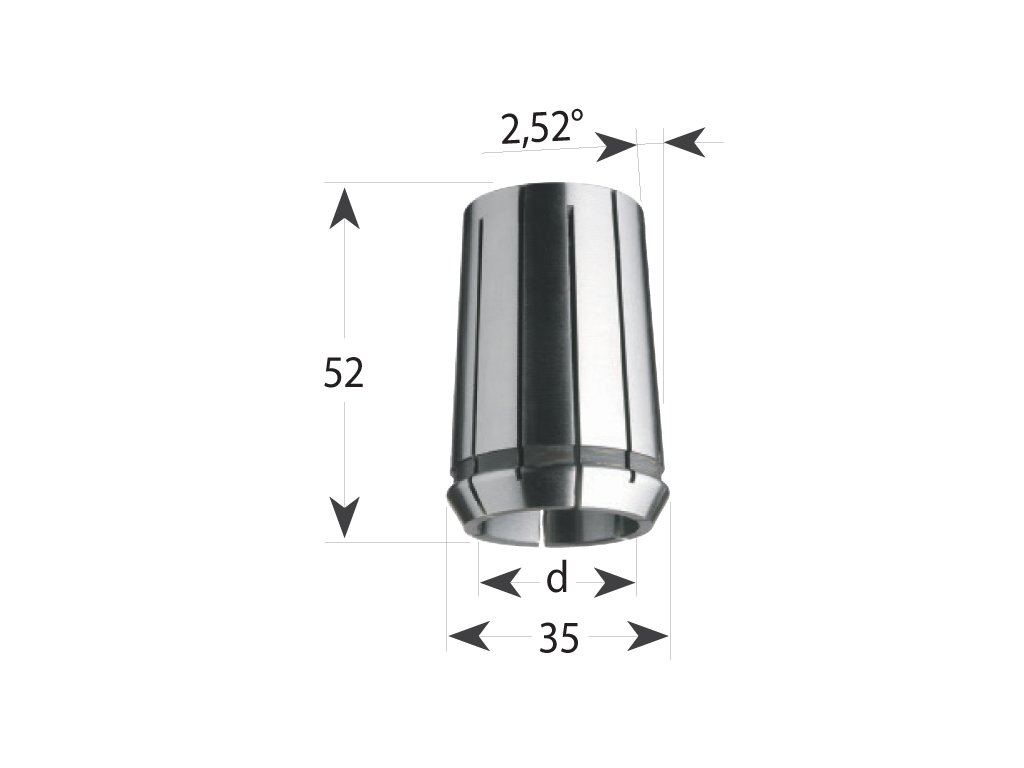 • Konzistentné silné zovretie v celej dĺžke 52mm v rozsahu 0-0,5 mm upínacieho priemeru.