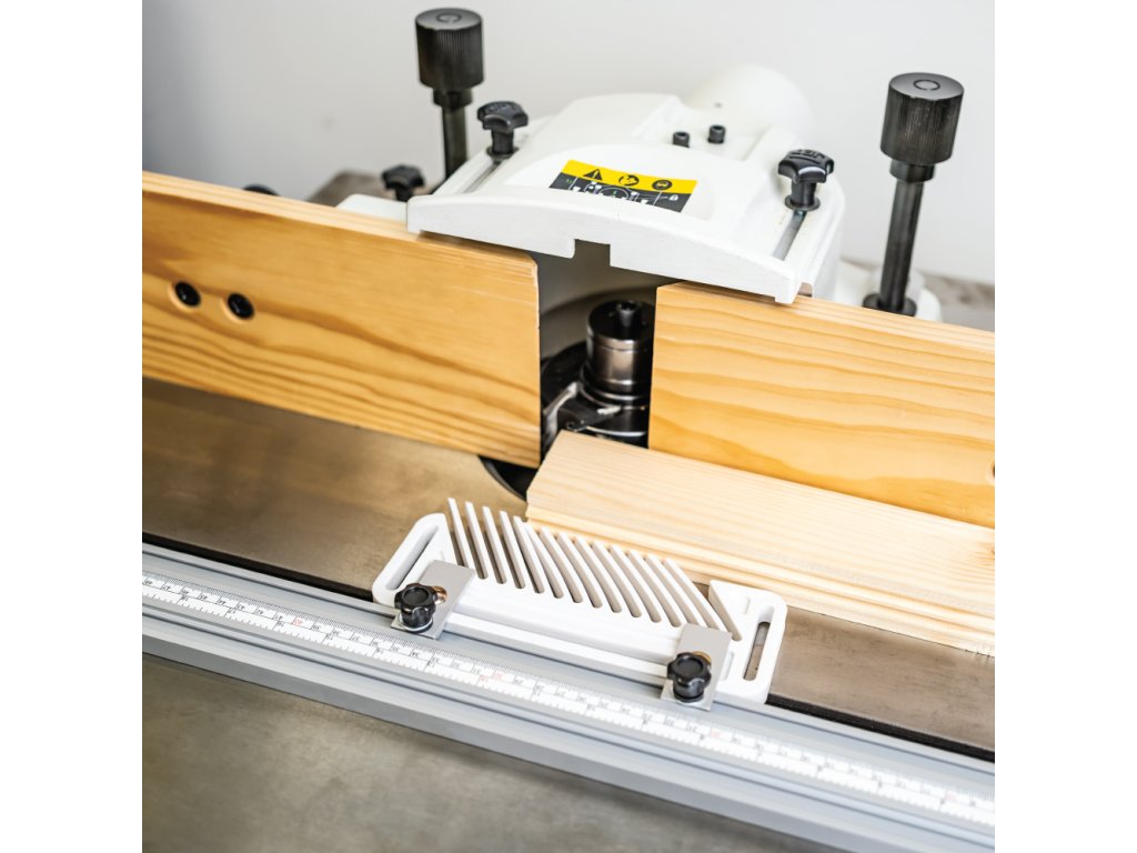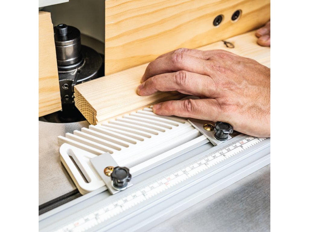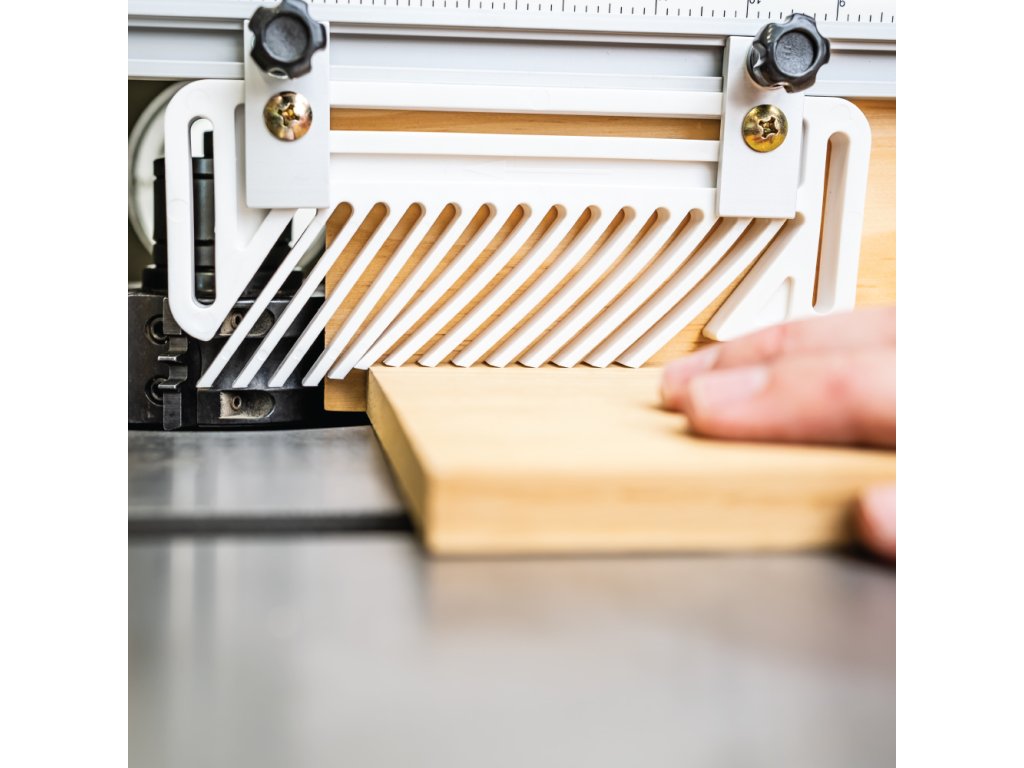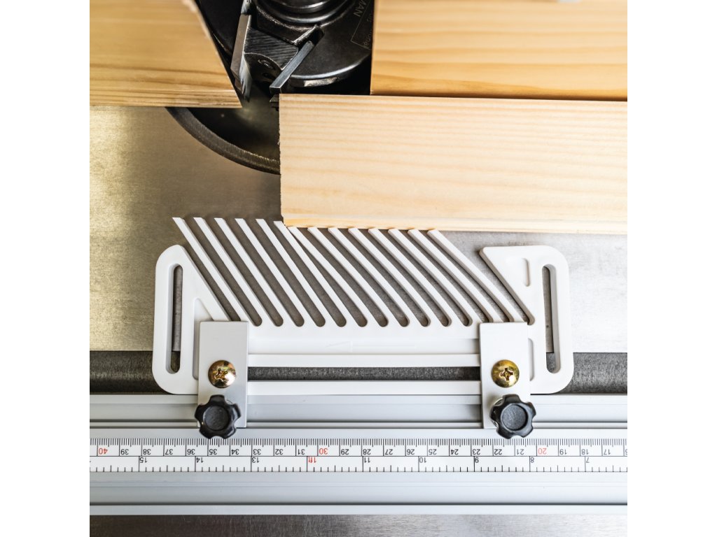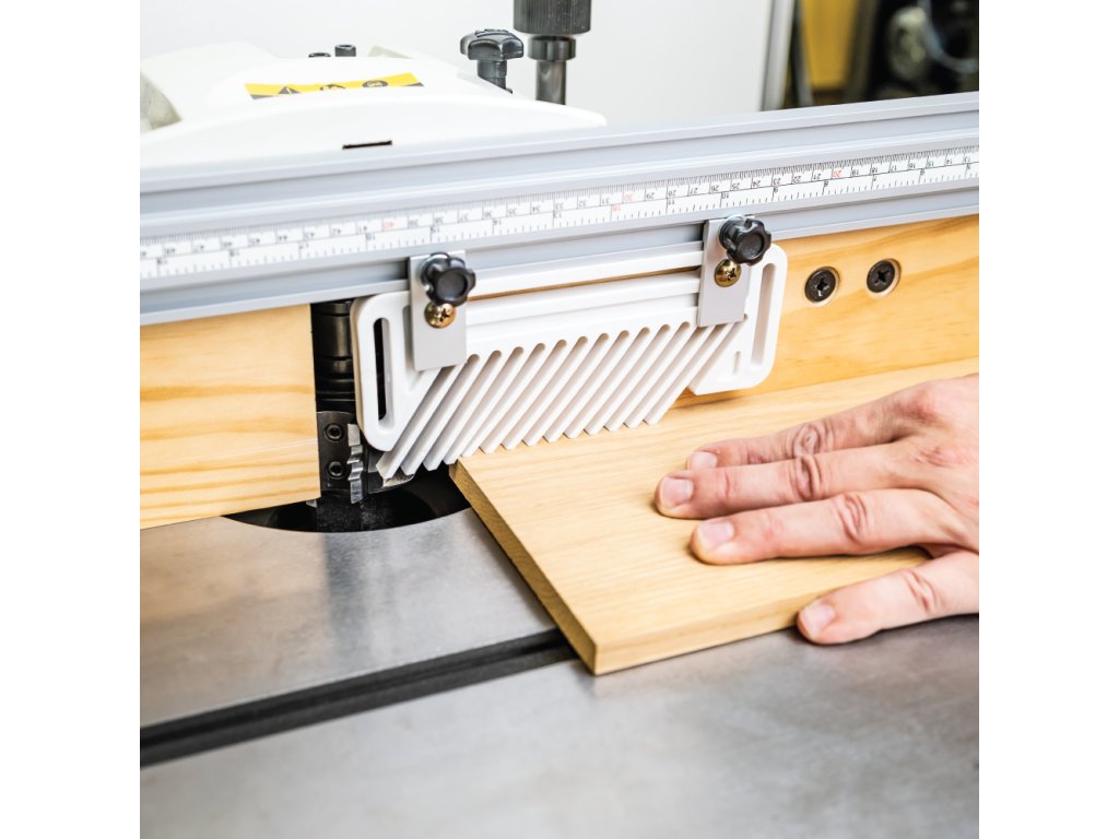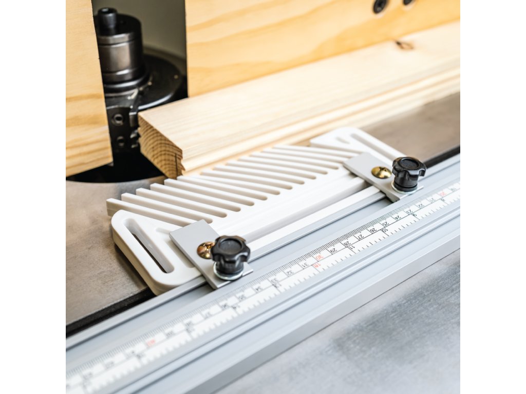 Prítlačný hrebeň je určený pre použitie s pravítkom s rýchloupínaním. Vylepšite si svoju kotúčovú pílu, frézku alebo pásovú pílu a jednoducho upnite pravítko s prítlačným hrebeňom k stolu a veďte bezpečne materiál do rezu. Určené pre pritlačenie dielca k frézovaciemu pravítku alebo stola počas frézovania na frézovacom stolíku alebo rezania na píle. Zabraňuje spätnému rázu.