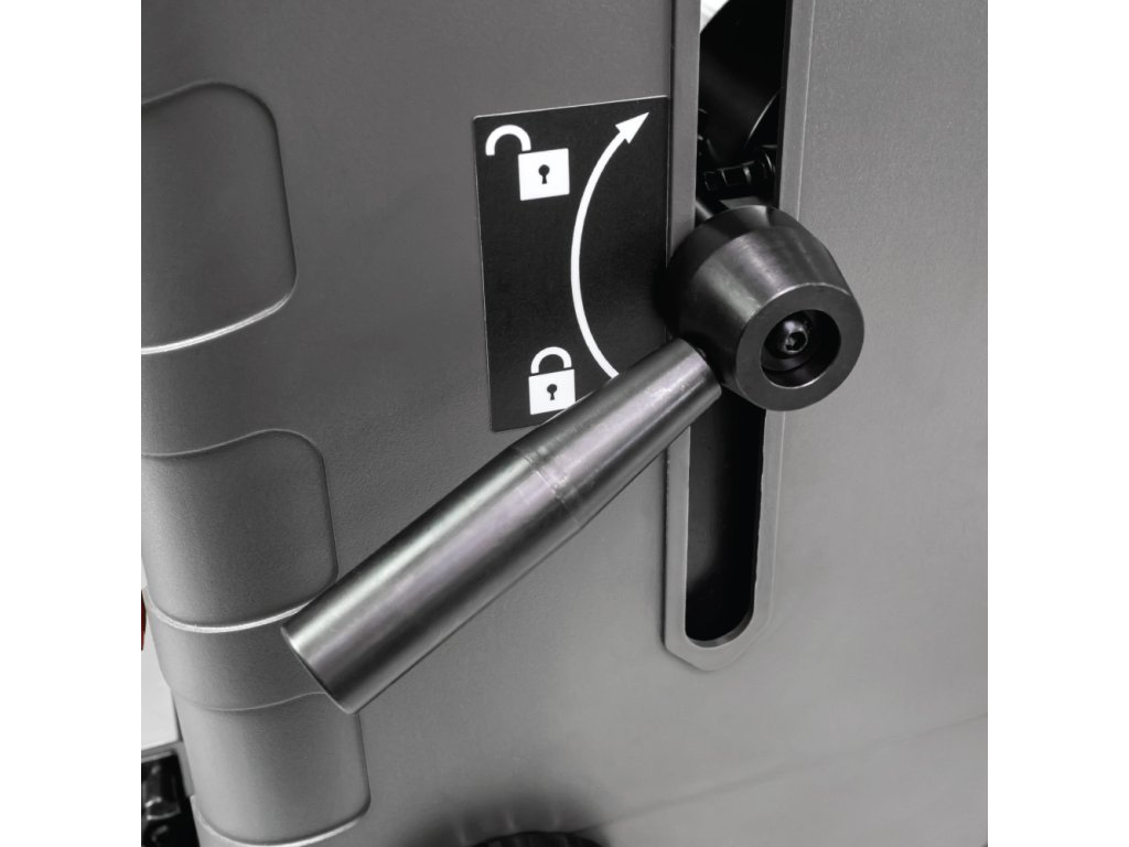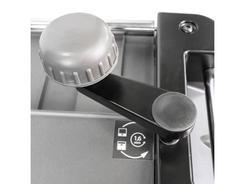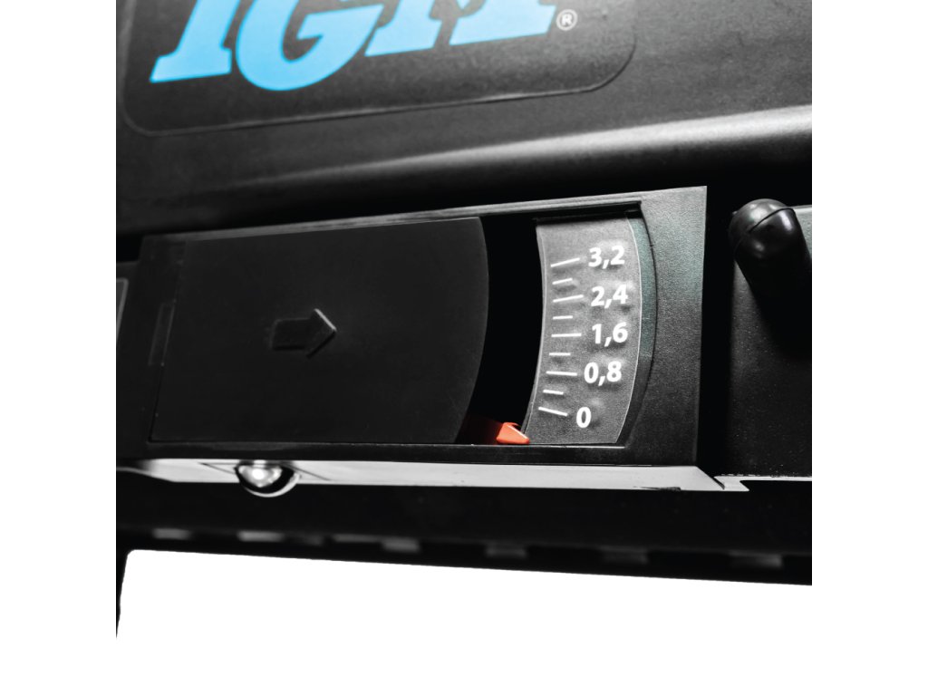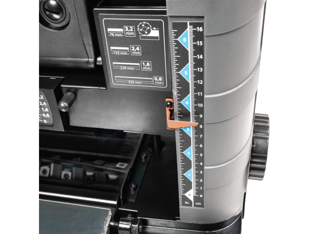Hĺbkový doraz na bočnej strane umožňuje ľahké hrúbkovanie väčšej série so zhodnou výškou, je ho možné nastaviť do 7 polôh od 3,2 mm do 38 mm.
