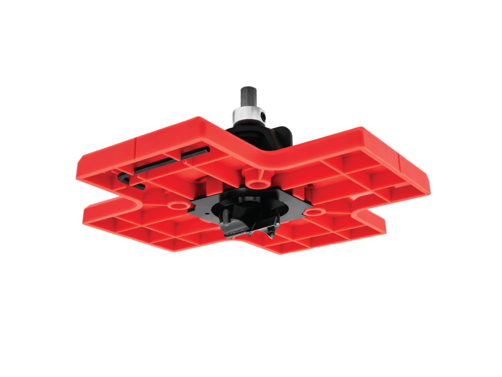 Montáž dvierok ku korpusu vám uľahčí táto šablóna pre vŕtanie 35mm misiek nábytkových pántov. NK pánty (závesy) namontujete behom chvíľky bez nutnosti zdĺhavého merania a značenia. Šablónu so sukovníkom 35 mm s valcovou stopkou môžete upnúť do akejkoľvek vŕtačky. Vďaka hĺbkovému dorazu vyvŕtate misku vždy do rovnakej hĺbky, v materiáli s minimálnou hrúbkou 18 mm. Šablóna je vybavená plastovými dorazmi, ktorými v rýchlosti nastavíte odsadenie misky od hrany dvierok vo vzdialenosti 3 mm, 4 mm, 5 mm alebo 6 mm. Súčasťou je aj magnetická šablóna pre vyvŕtanie otvorov pre skrutky, ktorými sa pripevňuje pánt na dvierka (vrták nie je súčasťou balenia). Otvory majú rozstup 45 mm a sú vzdialené od osi misky 9,5 mm, magnetickú šablónu tak možno použiť napríklad pre pánty od výrobcov Blum, Strong či Hettich.