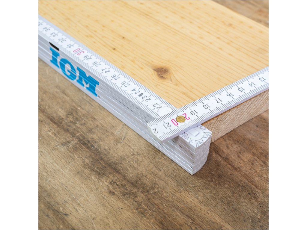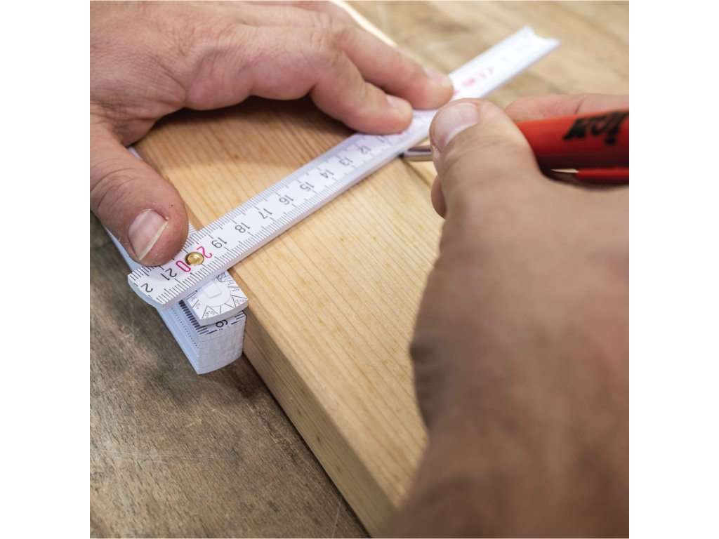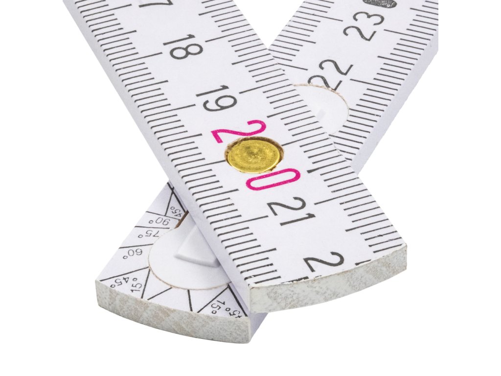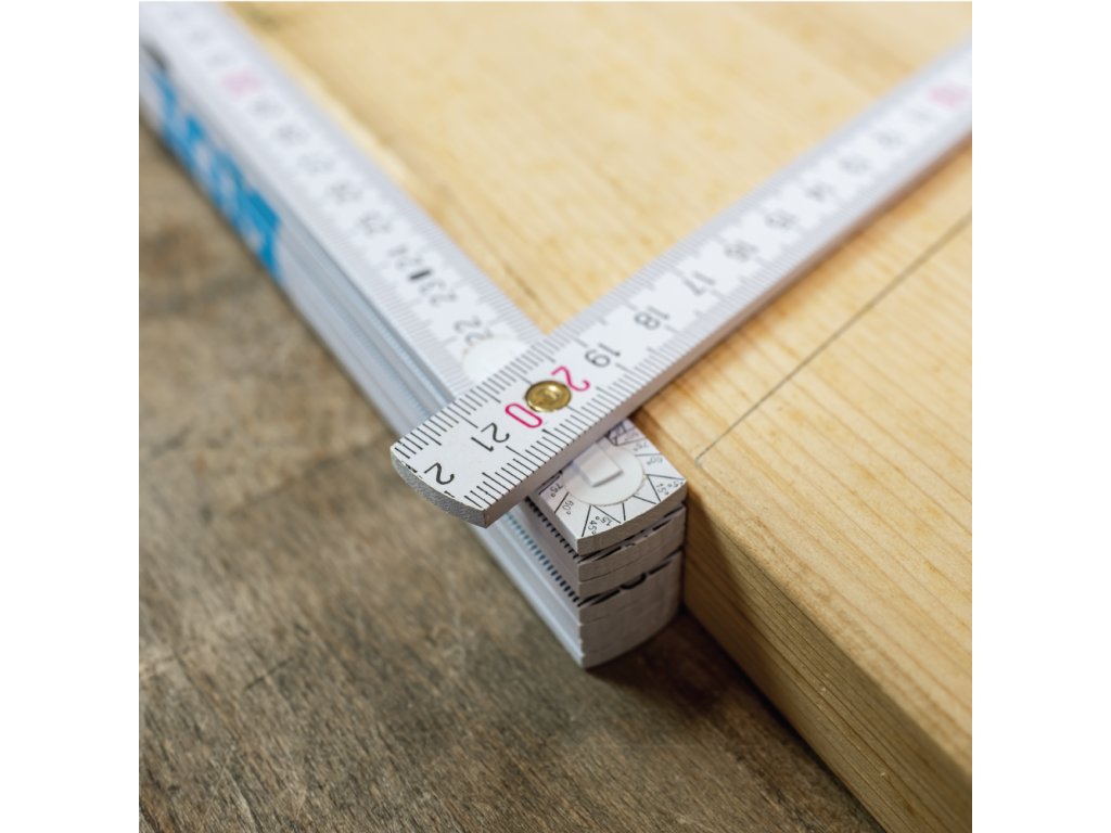• Kvalitný skladací meter z hrabového dreva. • Funkcia uhlomeru vďaka vyznačenej uhlovej stupnici pod kĺbom lamely (15°, 45°, 60°, 75°, 90°, 75°, 60°, 45°, 15°). • Dĺžka 2 metre, delená na 10 lamiel šírky 16 mm. • Vodeodolná konštrukcia vďaka dvojvrstvovému bielemu lakovaniu a vrchnej vrstve z UV laku. • Hladké rovné lamely pre presné rysovanie rovných čiar. • Zakryté kĺby s viditeľným nitom.Dodatočné parametre