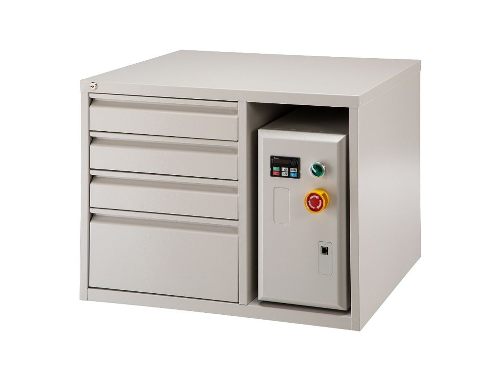 Poriadok a bezpečnosť je neoddeliteľnou súčasťou práce s CNC frézkou. V skrinke na náradie bezpečne uložíte ovládací box a všetko príslušenstvo ako sú svorky, nástroje, klieštiny alebo dotykový senzor v jednom zo štyroch šuplíkov.