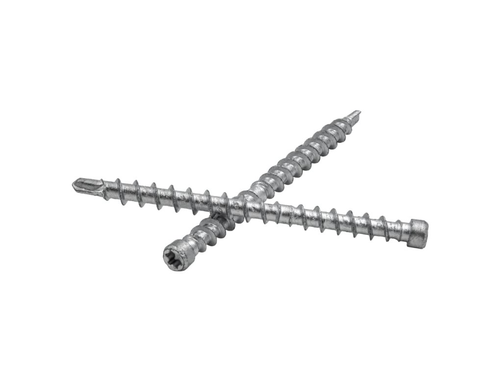 Tieto skrutky pre montáž terasových dosiek sú určené pre použitie s IGM Prípravkom na montáž terasových dosiek. Sú vyrobené z ocele s keramicko-zinkovým povlakom Ruspert, ktorý robí skrutku výrazne odolnejšou voči korózii a vplyvom počasia oproti skrutkám s iba pozinkovaným povrchom. Tento kompozitný povlak sa skladá z troch vrstiev. Chemická medzivrstva spája vnútornú zinkovú vrstvu a keramický povlak na povrchu. Skrutka s hrubým závitom má samořezný hrot. Zmenšená Torx T15 hlava sa zapustí do materiálu a skrutka tak nebude vidieť.