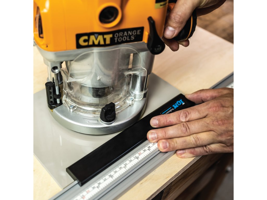 Pre frézovanie alebo rezanie podľa pravítka s rýchloupínaním. Univerzálna základňa má presné vedenie, ktoré pasuje do drážky v pravítku a Vaše rezy budú teraz vždy presné. Hornú frézku alebo okružnú ručnú pílu jednoducho upnete k univerzálnej základni pomocou skrutiek alebo vrutov (nie sú súčasťou dodávky).
