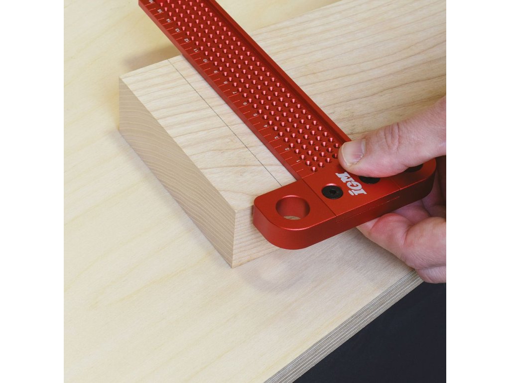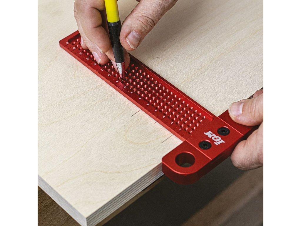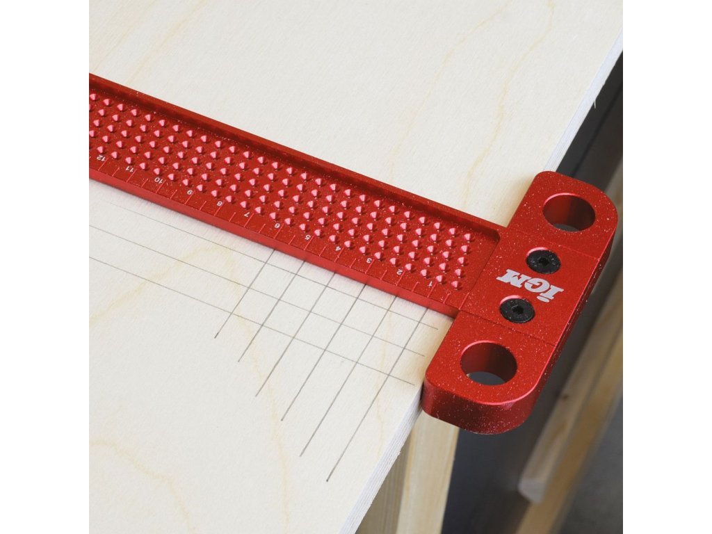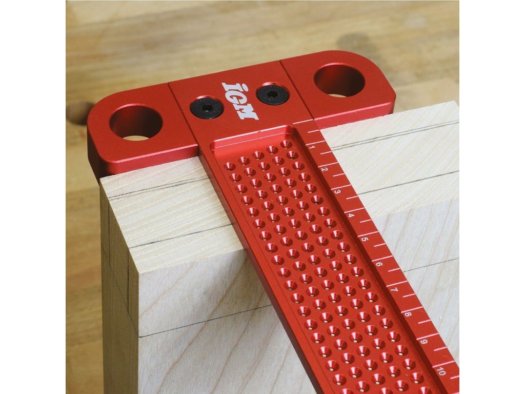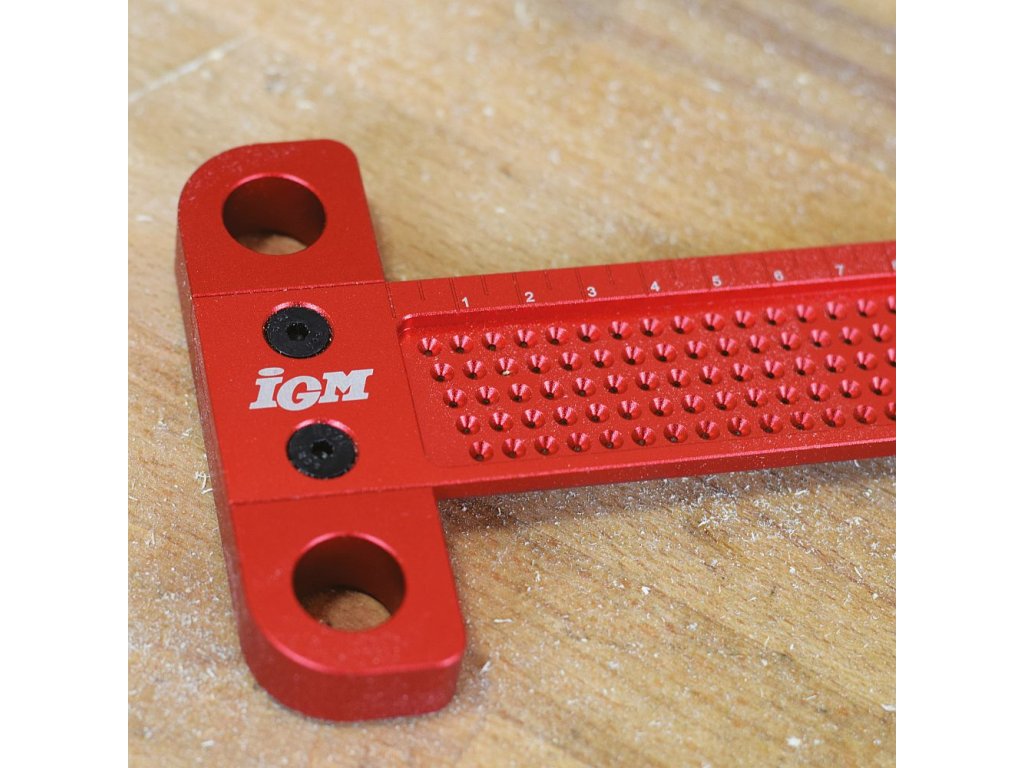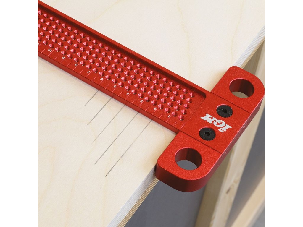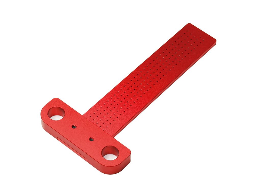 Presný a ľahko použiteľný duralový príložník so značiacimi otvormi. Pomocou príložníka vytvoríte dokonalé rovnobežné čiary. Vložte ceruzku do vybraného otvoru a vytvorte rovnobežnú čiaru posúvaním príložníka po hrane dielca. Rovnobežnú čiaru môžete rysovať vo vzdialenosti 5 až 160 alebo až 260 mm. Každý otvor predstavuje 1 mm.
