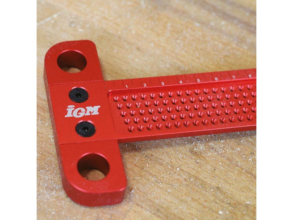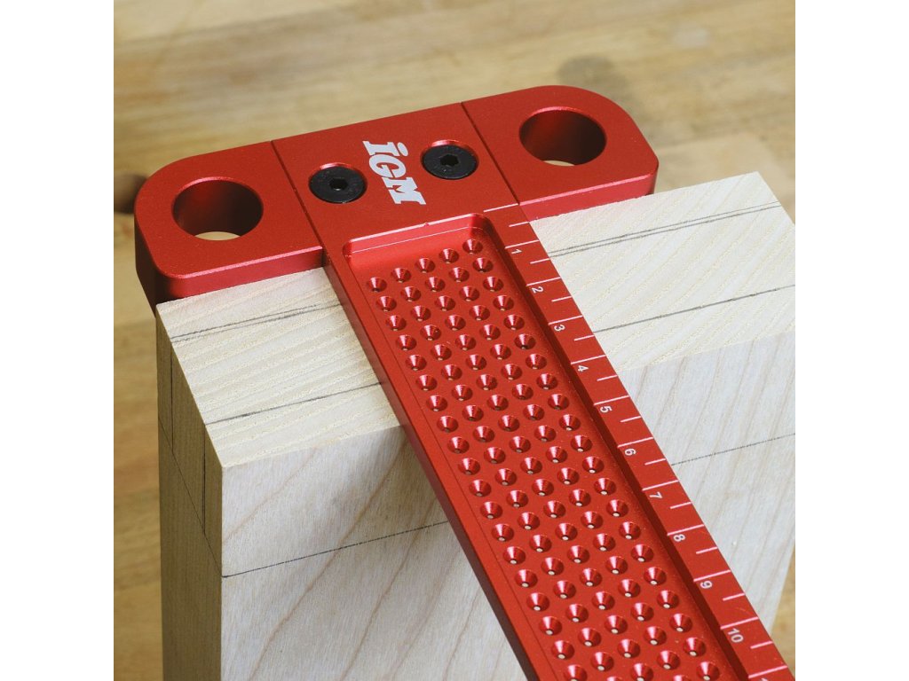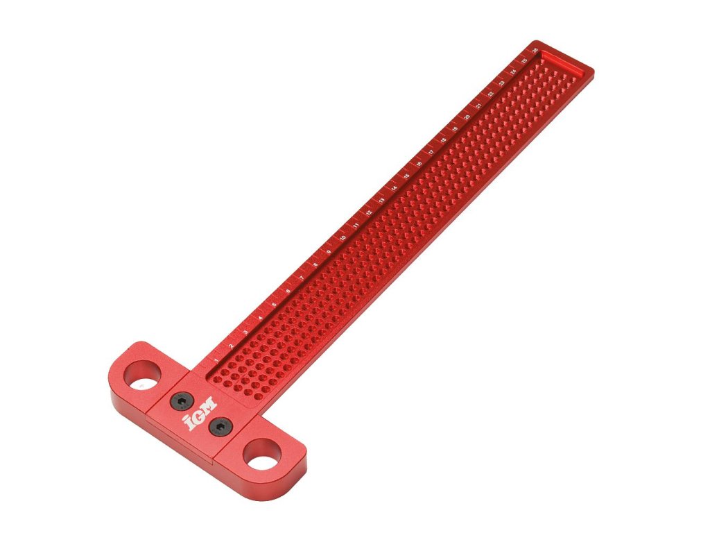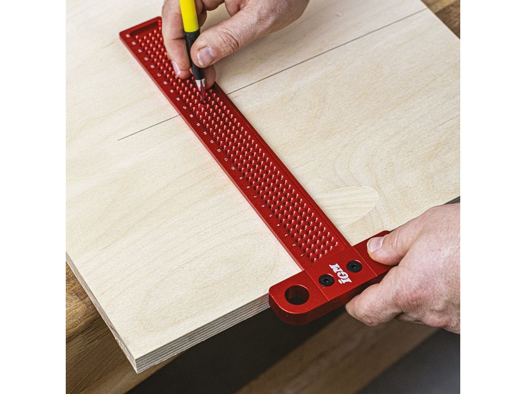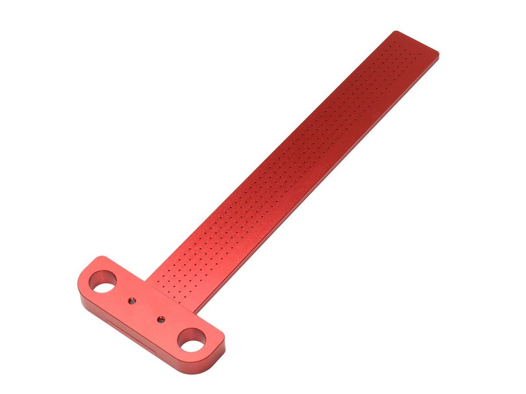 Presný a ľahko použiteľný duralový príložník so značiacimi otvormi. Pomocou príložníka vytvoríte dokonalé rovnobežné čiary. Vložte ceruzku do vybraného otvoru a vytvorte rovnobežnú čiaru posúvaním príložníka po hrane dielca. Rovnobežnú čiaru môžete rysovať vo vzdialenosti 5 až 160 alebo až 260 mm. Každý otvor predstavuje 1 mm.