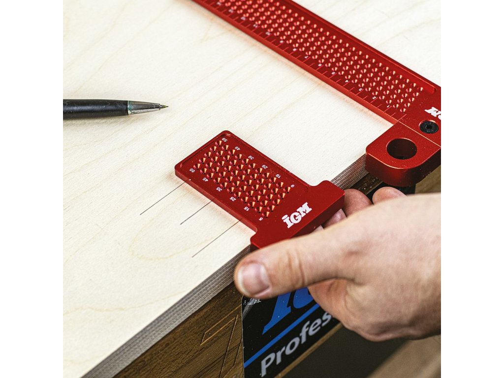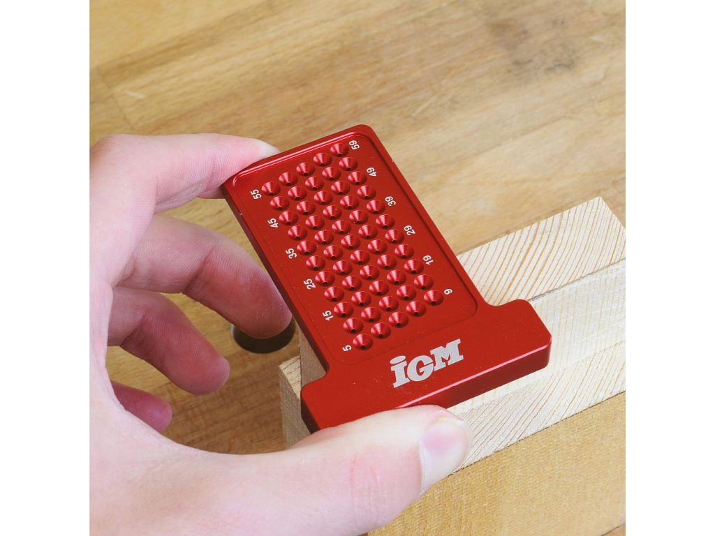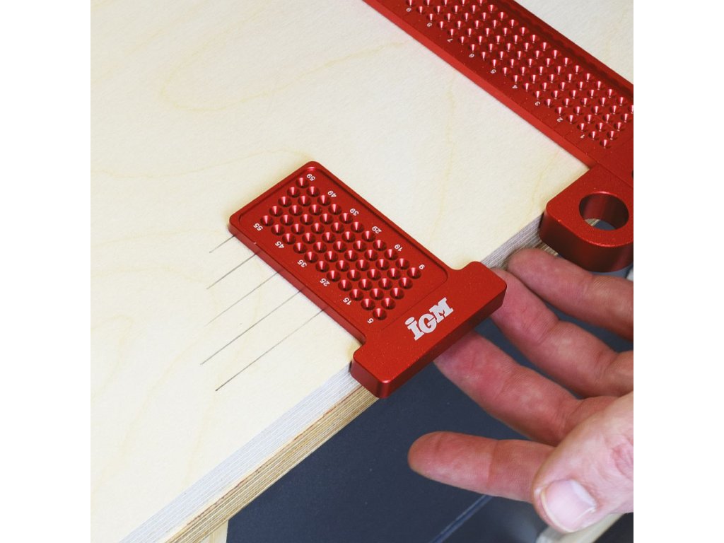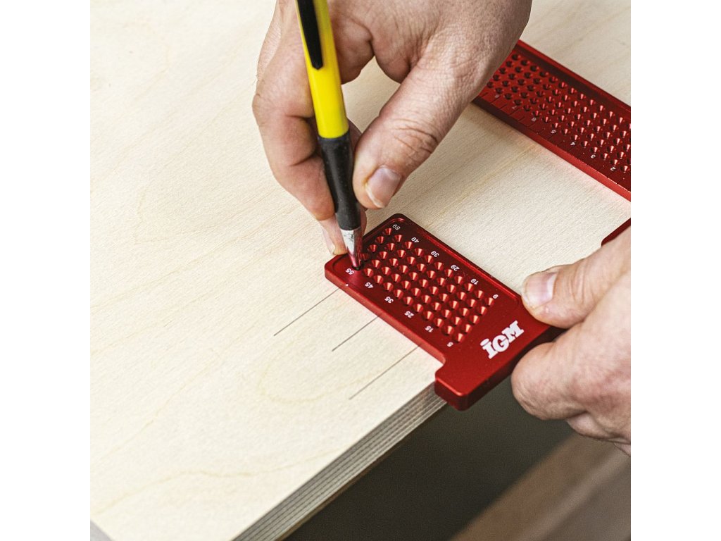 Malé kompaktné značkovacie pravítko pre rysovanie dokonale rovnobežných čiar podľa hrany materiálu. Vložte ceruzku do vybraného otvoru a vytvorte rovnobežnú čiaru posúvaním pravítka po hrane dielca. Rovnobežnú čiaru môžete rysovať vo vzdialenosti 5 až 60 mm od hrany dielca. Každý otvor predstavuje 1 mm.