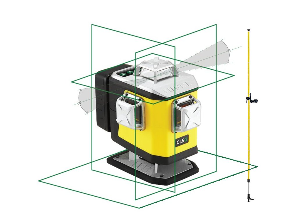Viacúčelový laser CL5G sa po zapnutí sám vyrovná a bude okamžite pripravený na prácu. Generovaný zelený laserový lúč je veľmi dobre viditeľný, zobrazený na stene predstavuje referenciu pre horizontálne alebo vertikálne práce. Pri práci s laserovým prijímačom a latou získa zákazník presnú nivelačnú súpravu, merania sa vykonávajú jedným človekom.