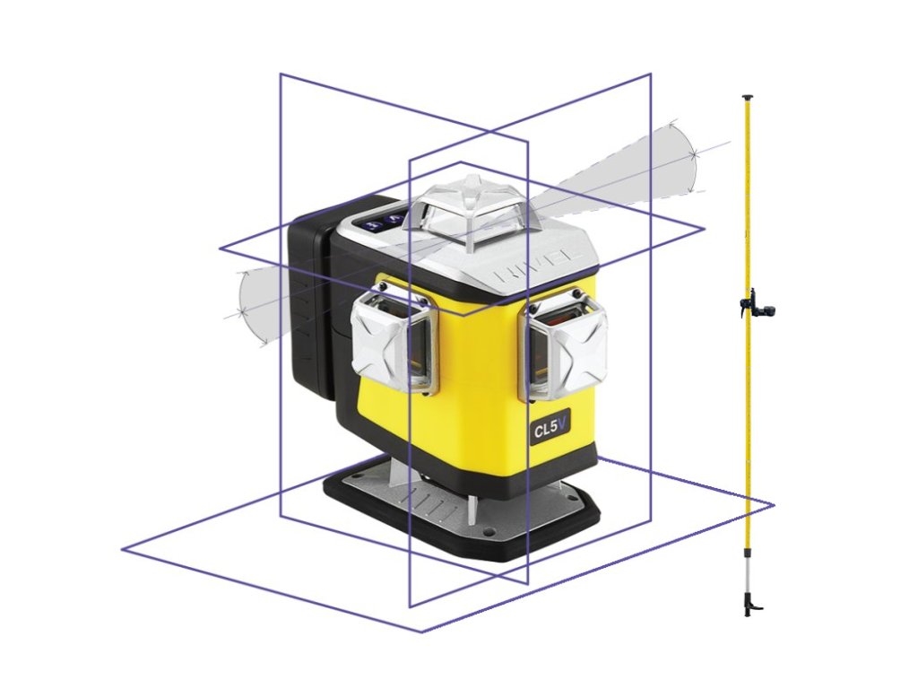 Viacúčelový laser CL5V sa po zapnutí sám vyrovná a bude okamžite pripravený na prácu. Generovaný z fialový laserový lúč je veľmi dobre viditeľný, zobrazený na stene predstavuje referenciu pre horizontálne alebo vertikálne práce. Pri práci s laserovým prijímačom a latou získa zákazník presnú nivelačnú súpravu, merania sa vykonávajú jedným človekom.