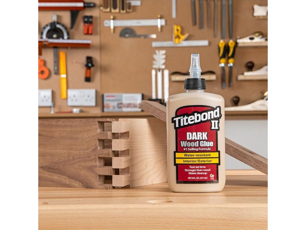 Po zaschnutí má hnedú farbu a preto je vhodné k použitiu všade tam, kde sa používajú tmavé odtiene dreva. Lepí všetky vonkajšie drevené konštrukcie vrátane dreveného záhradného nábytku. Titebond II Premium poskytuje silnú počiatočnú lepivosť v krátkej dobe, vysokú pevnosť a vynikajúcu brúsiteľnosť. Titebond II Dark sa jednoducho používa a odolný voči zlým poveternostným podmienkam. Lepidlo je možné ľahko očistiť navlhčenou handričkou.